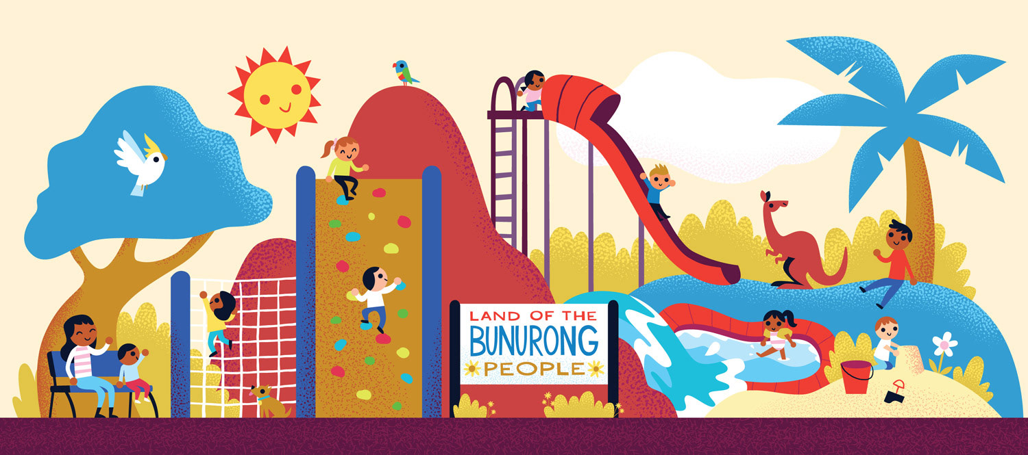 I worked with Karingal Hub, a local shopping centre here on the Mornington Peninsula, to illustrate five fantastical playground concepts created by five very creative kids!
